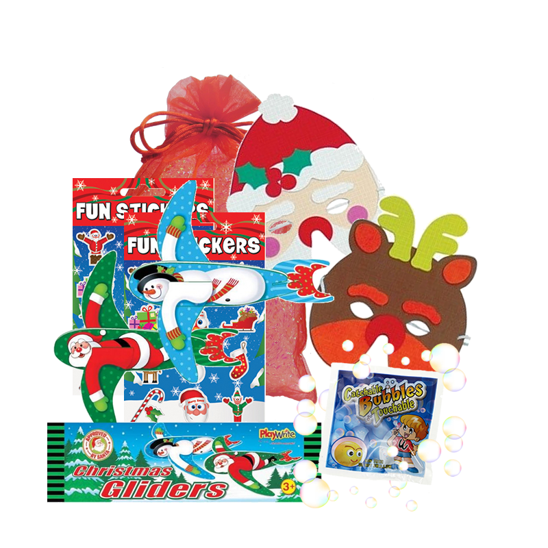 Perfect for your Christmas parties or Santa gift these Xmas themed party bags will add awe!. Each metallic organza drawstring party bag contains: